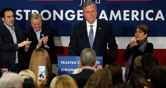 At the motel, I switched on CNN just in time to see his concession speech, preceded by a breathless announcement from the CNN floor guy that “Governor Bush will be suspending his campaign”. Yay, CNN. You got the scoop. When Jeb emerged, he was puffy-faced, red, and had either been crying or coming (people deal with loss in different ways). The energy in the room gathered and focused on him in the usual mind-meld: don’t lose it, man, hold it together. He waffled a bit, and then got to the point: “The people of Iowa and New Hampshire and South Carolina have spoken, and I really respect their decision.”